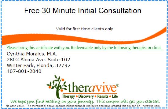 Cynthia Morales, M.A. began her private practice, Moment to Moment Counseling and Wellness, LLC, when she set her intention to offer her specialized counseling and wellness services to the Orlando, FL community. Cynthia is an Orlando native who decided to expand her practice as a mental health clinician to a private setting. She seeks to share her compassion for the wellness of those seeking to bring greater compassion into their own lives. Her mindfulness-based approach to counseling and wellness invites her clients to deepen their connection with self and with their lives, moment to moment. Cynthia uses a variety of techniques compatible with individuals of all ages, including CBT, expressive therapies and mindfulness.