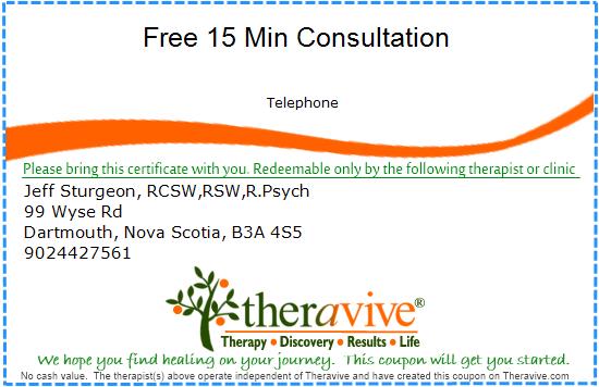 Call Jeff today! Counselling services are covered by most benefit plans.