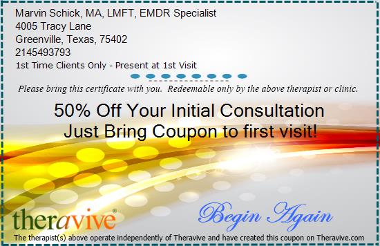 Therapy Coupon.  Counseling Discount.