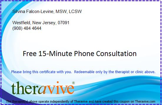 Send A Message To Silvina. - Session Fees: Fees Free 15-Minute Phone Consultation - Please see website